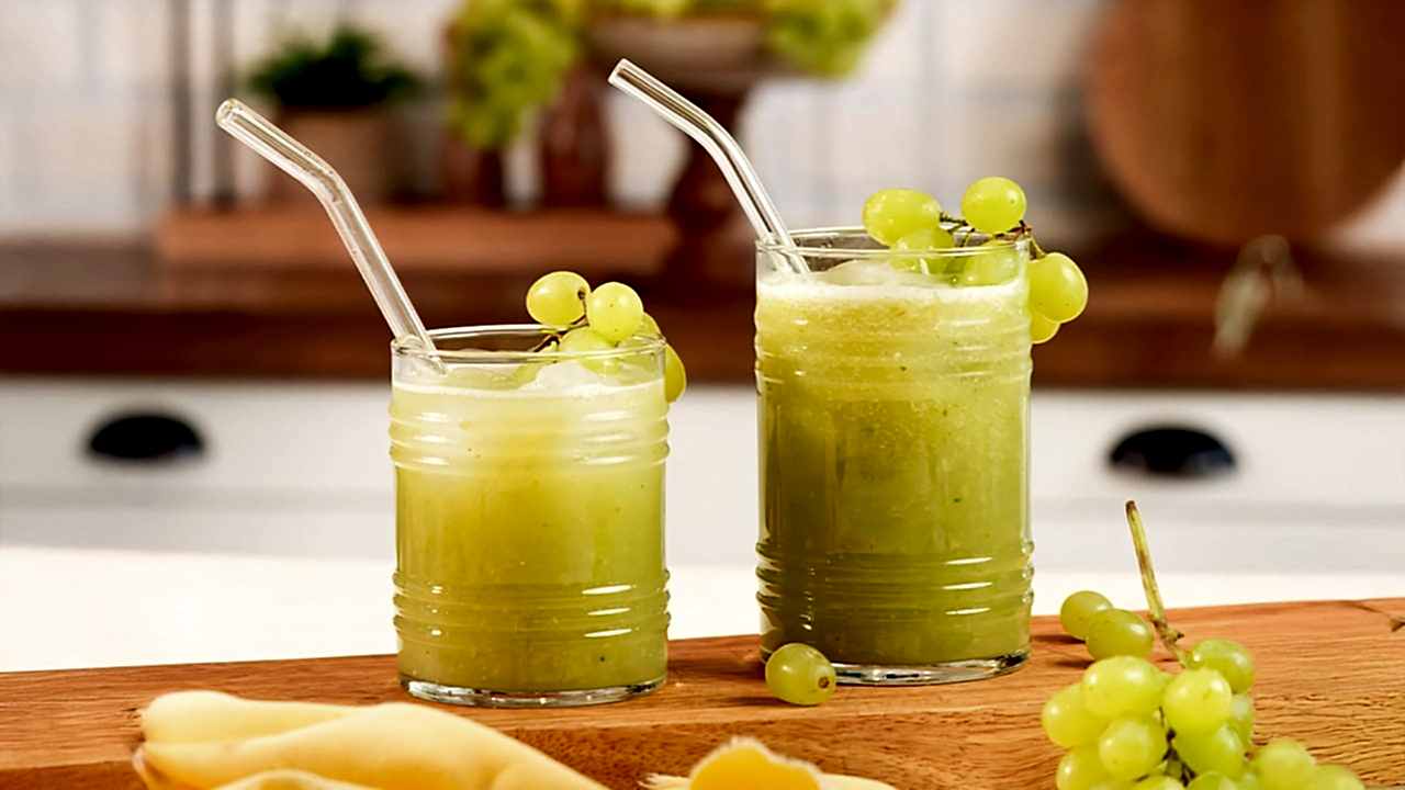 Meyvelerin doğallığını, aromatik bir dokunuşla buluşturan bir lezzet: Üzümlü Smoothie. 🫐🍏
